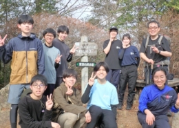 こんにちは、山岳部です!年に数回山に登ります。愛知県内だけでなく、近県の山に日帰りをメインに登ります。山に登り切った時の達成感は何とも言えぬ良いものです。平日の練習内容は、ランニング、荷を背負っての階段の昇降、筋トレなどで、土日祝日には、食事作り、テント設営なども行います。登山に興味のある人!一緒に山に登りませんか。
