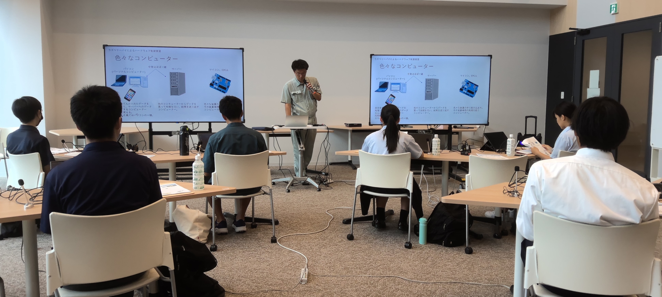 講義では、60分間集中した様子で機械学習や画像処理について理解を深めていました。その後のプログラミング実習ではセットアップから自分で行い、自らの手でプログラムを作り、LEDの発光をコントロールすることの難しさと面白さを実感することができました。科学・技術・工学をより身近に感じ、その魅力を理解することで将来の進路選択のきっかけになることを願います。