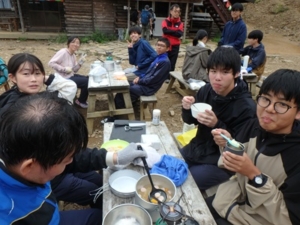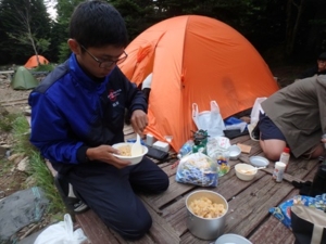 早い時間に着いたテントサイトで昼食です。