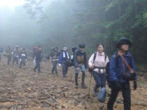 4日目は、天候が悪く霧の中を下山です。