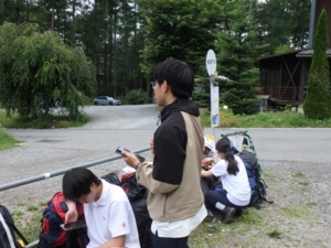 登山口でバスを待ちます。