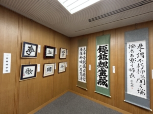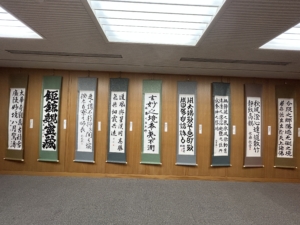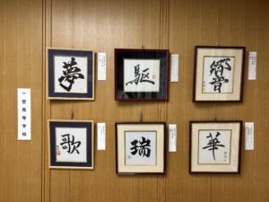 追記:この書道展に出品された全作品の中で、2年生の入江 美羽さんの作品が優秀7作品のひとつに選出され、来年度の総文祭出品候補作となりました。入江さんの作品は11月26日から30日に岡崎市美術館で開催される東西三河支部書道展でも展示され、最終選考を受けます。