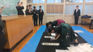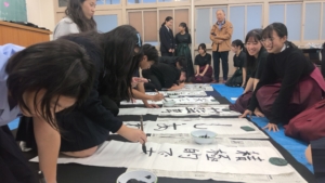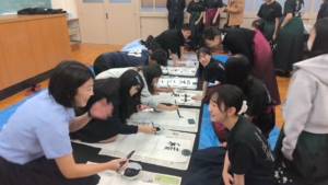 留学生と交流しました2025年12月11日/カテゴリ: お知らせ, 書道部 /作成者: HYG-74hyg-41JHY今年も昨年に引き続き、台湾の板橋高級中学から留学生が来ました。書道部は、日本文化の紹介として10月28日(火)に留学生と交流しました。最初に部員が見本として作品を書いた後、留学生の方に自由に筆をふるっていただきました。最初は初対面のせいか少し堅い雰囲気でしたが、徐々に慣れ親しんでお互いに笑顔が見られるようになりました。短い時間でしたが、相互理解を深めるいい機会となりました。 https://ichinomiya-h.jp/wp-content/uploads/2025/12/WIN_20251028_17_16_11_Pro-scaled.jpg 1440 2560 HYG-74hyg-41JHY https://ichinomiya-h.jp/wp-content/uploads/2022/12/ichinomiya_logo340_156b.png HYG-74hyg-41JHY2025-12-11 08:17:222025-12-11 08:17:22留学生と交流しました