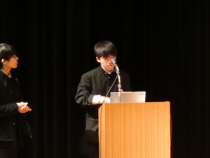 物化部の信号反応班(2年2名)が「インジゴ誘導体の色と構造」の研究発表を全国審査部門(9校13件)で行いました。