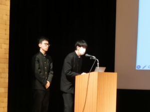 熱音響班(2年2名)が「熱音響自励振動の原理と効率化」、マグネティックバイオロジー班(1年1名)が「磁場刺激による血液モデルのpHと血行変化の関係性」の研究発表を一般参加部門(9校15件)で行いました。