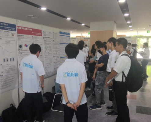 愛知県、東京都から3校(5発表)が集い、午前の部で口頭発表、午後の部でポスター発表を行いました。高校生同士での研究発表交流に加え、NIFSの研究者やオープンキャンパスの一般参加者から質問や意見をもらうことができました。研究を継続する上で有意義なフィードバックを得ることのできた一日となりました。