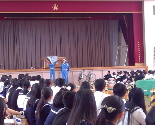 同窓会副会長様からのお誘いがあり、フェスティバルへのボランティア参加。総合受付、ライダーゲームコーナーのゲームの取り回し、選挙体験コーナーでの応援ライダー選挙の受付などの仕事を、笑顔で対応しました。3年生の3人は、限定1組に無料でプレゼントする人前結婚式のお手伝いを強く希望し、ウエディングドレスの着付けの様子、ドレスでの移動のサポートをすることができ、結婚式に感動していました。ゲームコーナーでのお手伝いは、子どもの文化コースの生徒が多く、小さな子たちとの触れ合いを楽しみました。選挙体験や受付も地域の方々と言葉を交わし、やりがいをもって一日活動することができていました。ボランティア活動の中でそれぞれに学び多き一日となったようです。