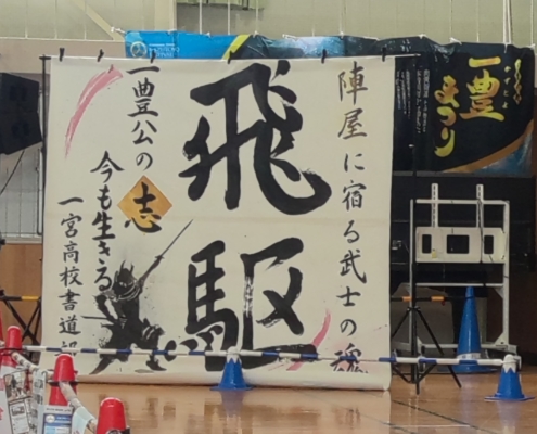 9月14日(日)に開催された一豊まつりに協力し、今年もイベントの看板を書きました。昨年以上にカラフルに、そして戦国武将や紅葉のイラストを描くなど絵心(?)を出してみました。また今回はメイン会場の黒田小学校でのセレモニーに呼んでいただき、作品に込めた思いなどをアピールさせていただきました。